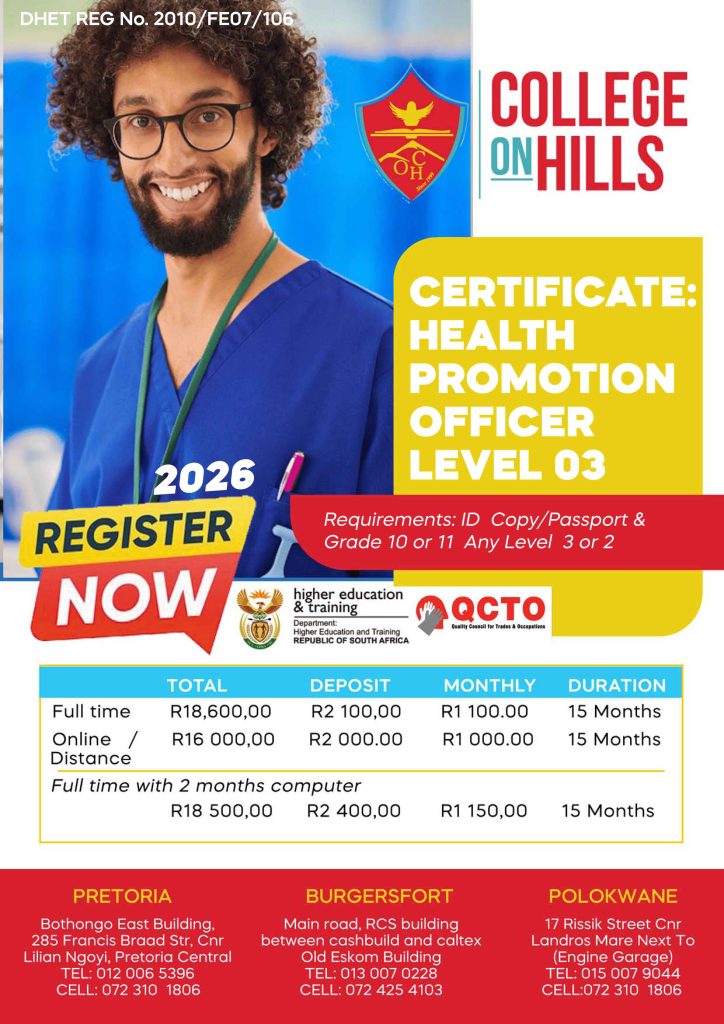 Registration Fee: R390 National Certificate | Diploma With/Without Matric - includes Practicals |